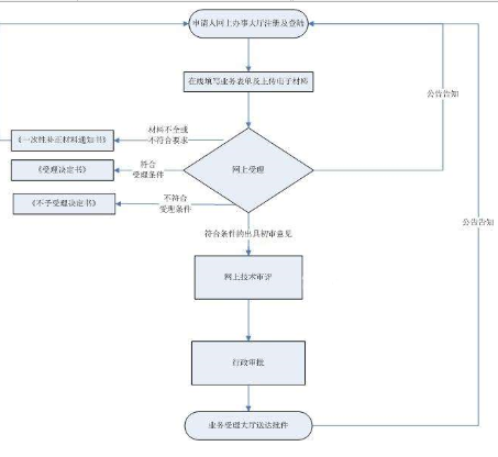 办理机关收到网上申请材料之日起5个工作日内确定是否受理。申请材料不齐全或者不符合法定形式的,在5个工作日内一次告知申请人需要补正的全部内容,逾期不告知的,自收到申请材料之日起即为受理。