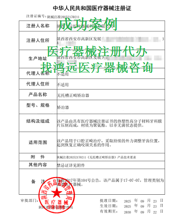 深圳鸿远医疗器械咨询提供专业的医疗器械注册技术咨询服务,无托槽矫治器产品注册成功案例如图: